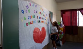 Los chicos realizaron la pancarta con letras en goma Eva. Eligieron una frase por sorteo. Se recortó un corazón en […] Read more