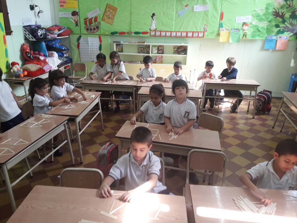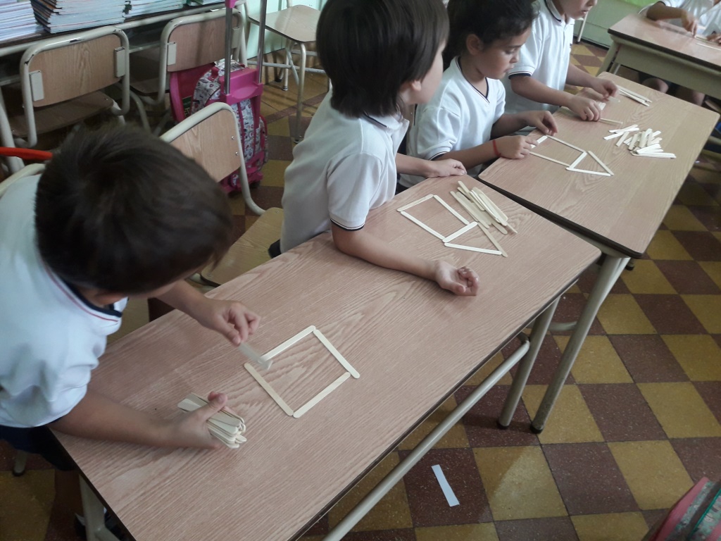 En primero aprendemos jugando 1° A Para trabajar numeración utilizamos material concreto. Reconocemos cantidades y armamos figuras según la consigna. Nos divertimos mucho.