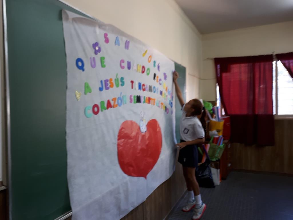 Festejo de nuestro patrono “San José” 4° A Los chicos realizaron la pancarta con letras en goma Eva. Eligieron una frase por sorteo. Se recortó un corazón en afiche y la imagen de San José!!! 20180315_08240020180315_08242120180315_082656