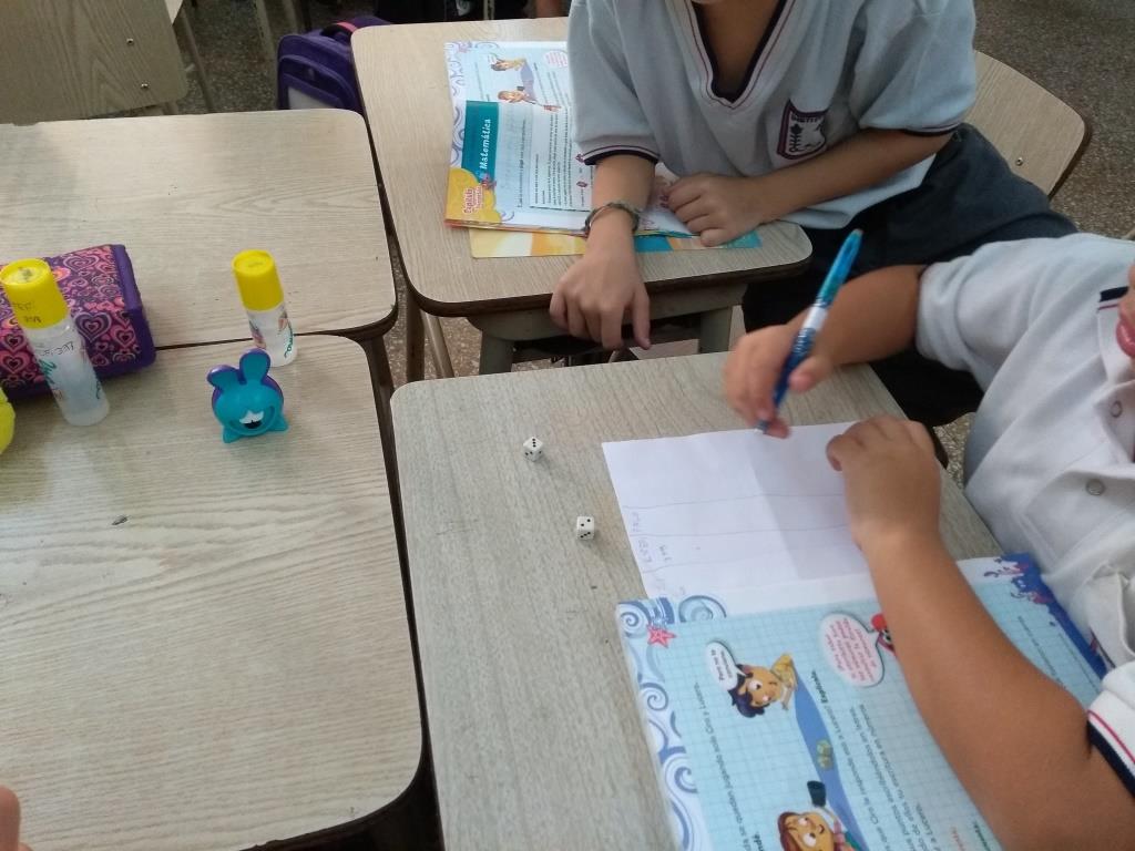 La actividad se realiza en grupos, consiste en armar números con 2 dados, cada alumno elige el valor más alto para los cienes y el otro dado para los dieces.