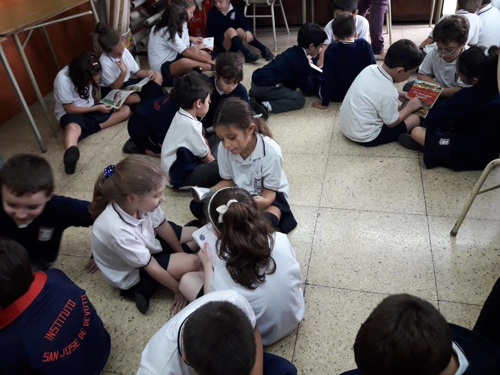 En esta clase los alumnos/as se encuentran en la biblioteca a fin de comenzar con la exploración de libros de tipo informativos y los de tipo fantástico. Pudieron reconocer las diferencias entre ambos. Luego se formaron grupos y a cada uno de ellos les tocó un libro diferente ( informativo o fantástico), al finalizar cada grupo realizó una puesta en común comentando de qué tema trataba dicho libro.