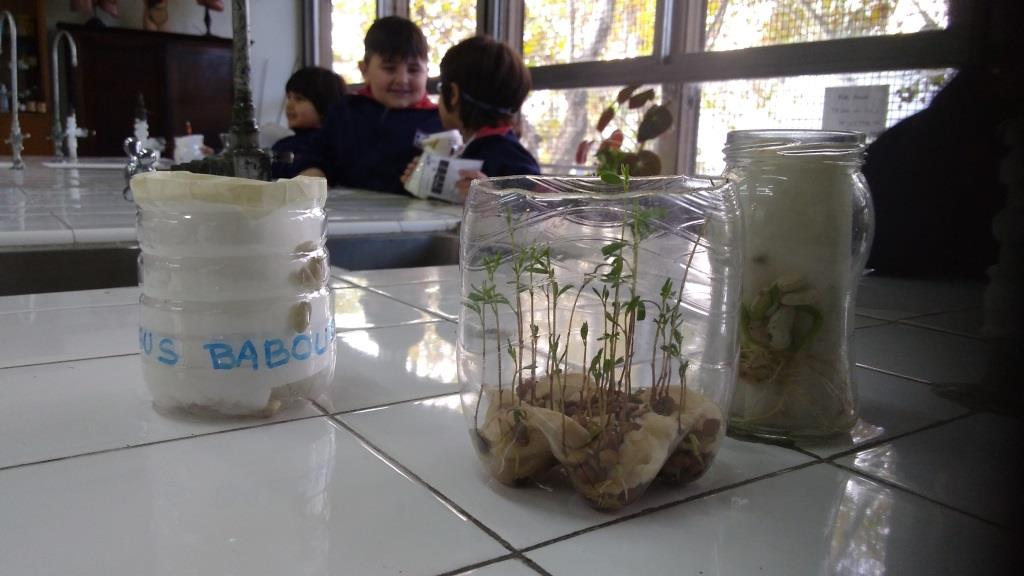 Observamos qué sucedía con tres germinaciones expuestas a situaciones diferentes: una, no recibió ni luz ni agua, otra con luz y agua en exceso y otra, que obtuvo lo necesario. Los chicos pudieron observar por el microscopio la piel del poroto y ver las células que lo conforman; además de registrar lo realizado. Fue una experiencia muy enriquecedora y divertida.
