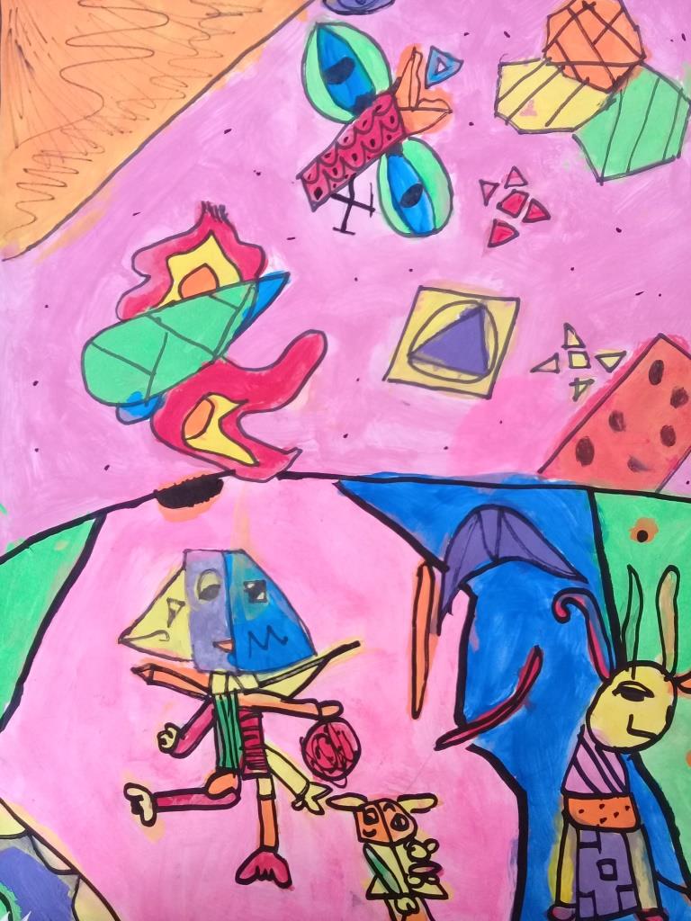 Tomando la obra de la etapa cubista del artista plástico Pablo Picasso como referente, los estudiantes de sexto grado configuraron diferentes representaciones pictóricas, utilizando las nociones de multiplicidad de puntos de vista y geometrización estructural de las figuras.