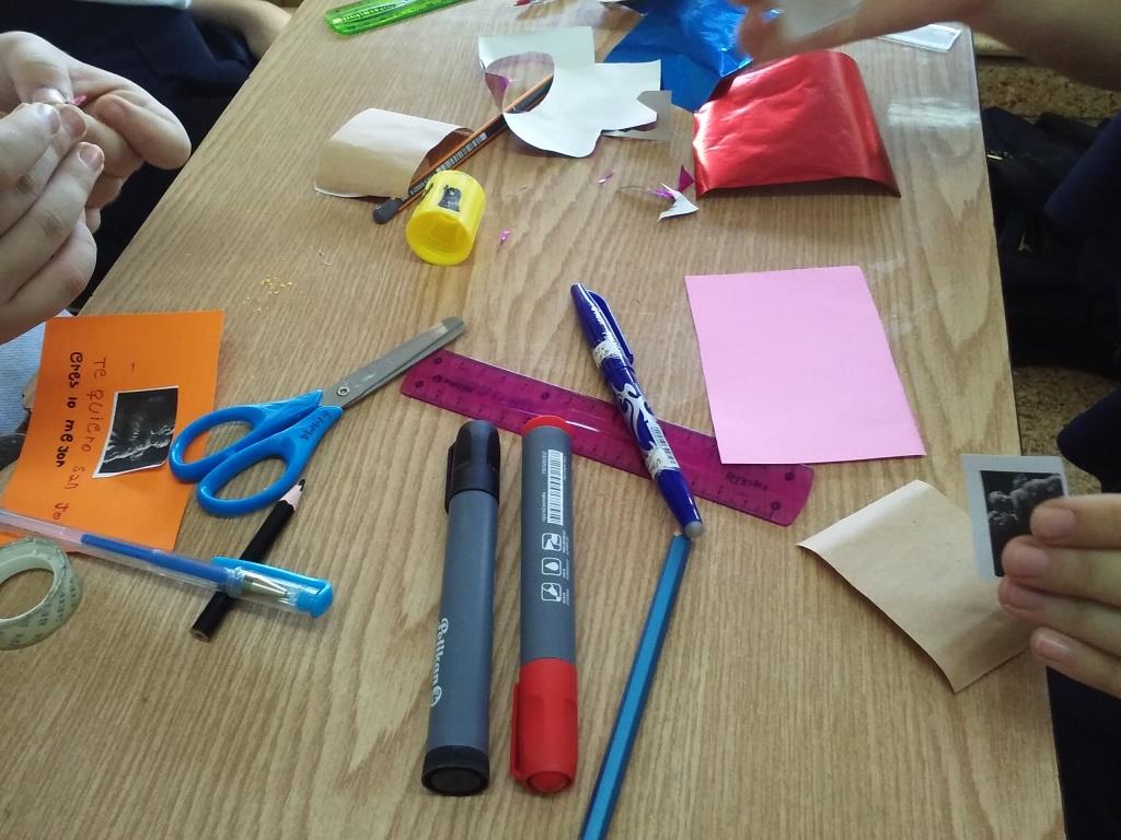 La tecnología como conjunto organizado de conocimientos y acciones, resolviendo problemas que se presentan con el objetivo de lograr un producto terminado específico y satisfacer una necesidad. Se trabajó con 6º grado la temática de materiales con texturas diversas y herramientas acordes para realizar tarjetas que se repartirán el día de la celebración de San José.