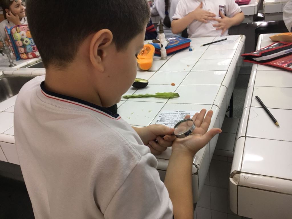 Llevamos diferentes frutos para conocer sus semillas. (paltas, zapallos, chauchas y tomates). En grupos analizamos sus características externas e internas; los abrimos, exploramos y observamos concluyendo que los frutos contienen a las semillas y éstas contienen dentro suyo al embrión que se convertirá, con las condiciones necesarias, en una nueva planta.