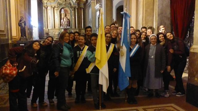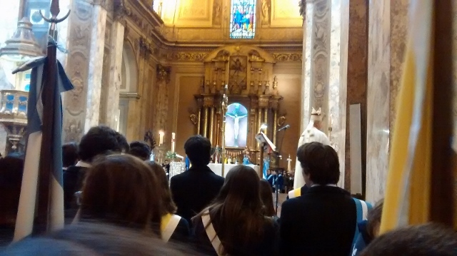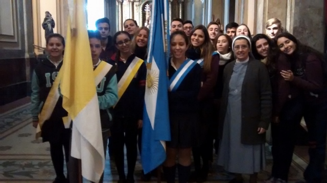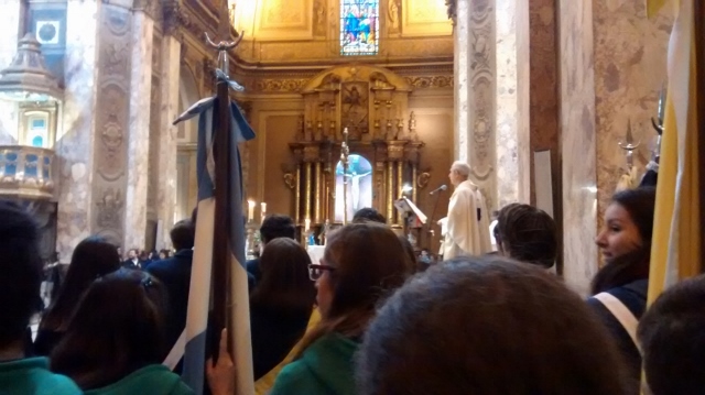 Nuestro colegio en respuesta al llamado del Cardenal, concurrió a la Misa con un grupo de alumnos de 5 año comercial, los abanderados y escoltas de las banderas Nacional, los abanderados de 7° grado de la bandera Papal y directivos del Nivel Primario y Secundario.